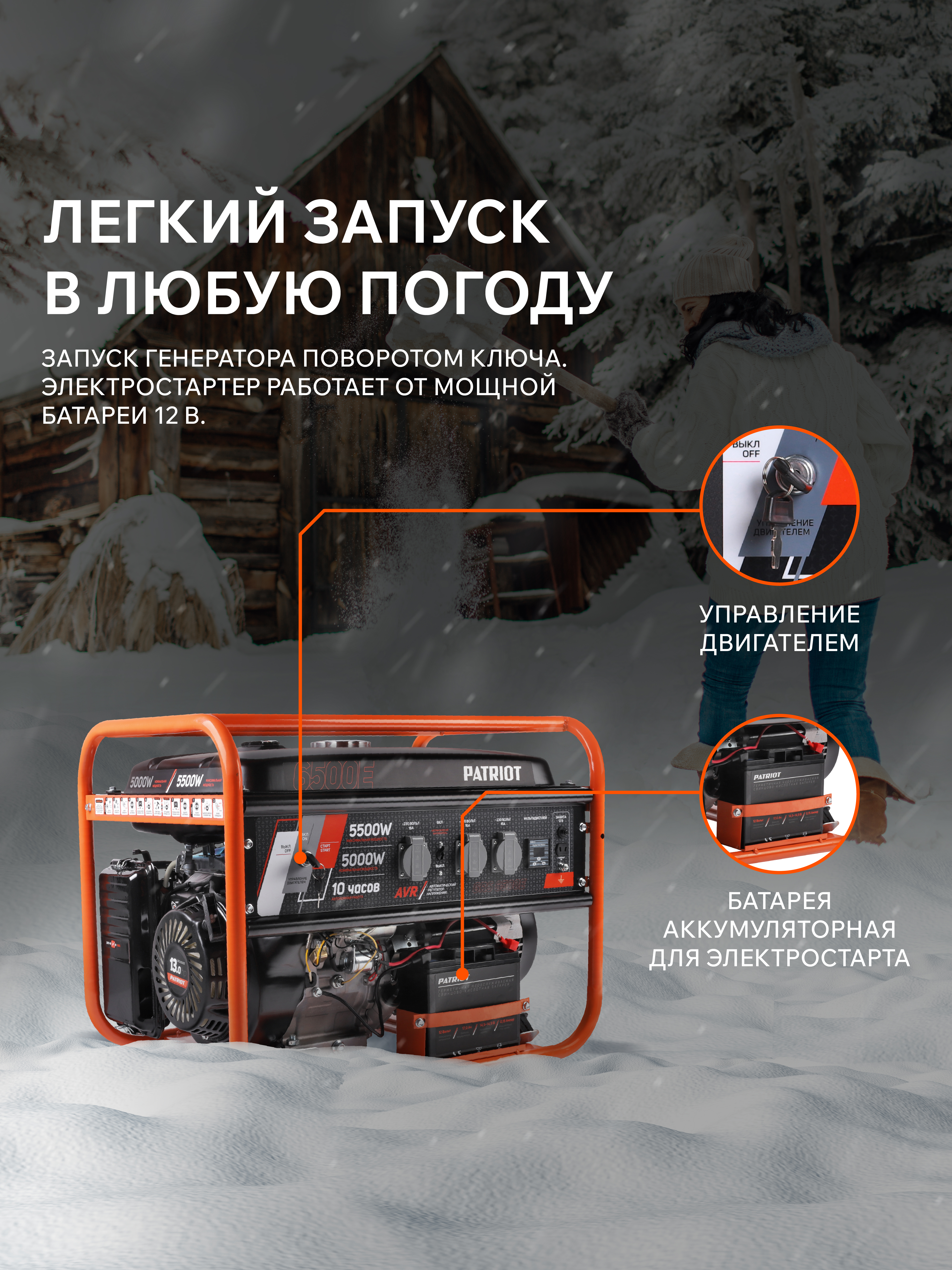 Бензиновый генератор PATRIOT GRS 6500 E 476102271: характеристики